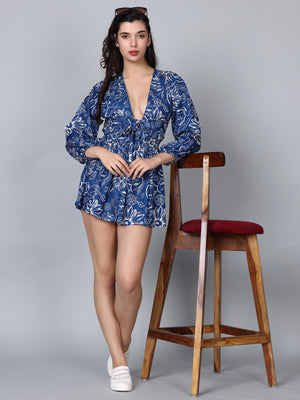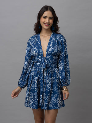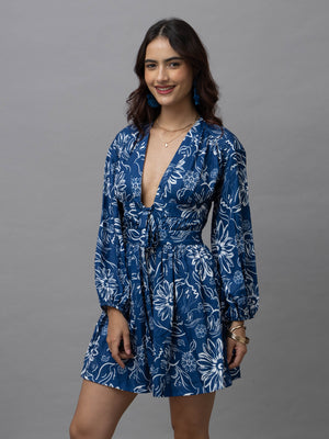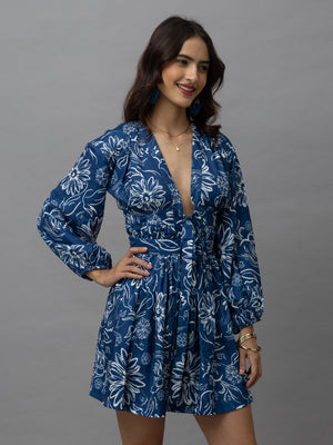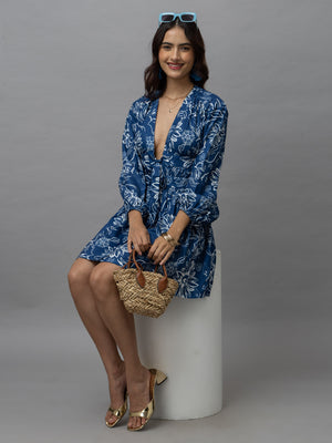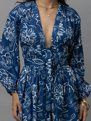 Adele Blue Floral Print Mini Dress