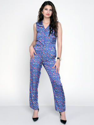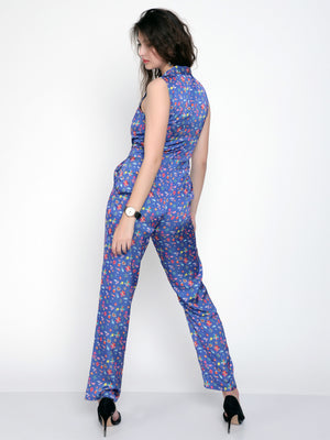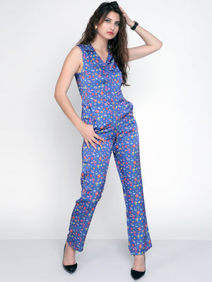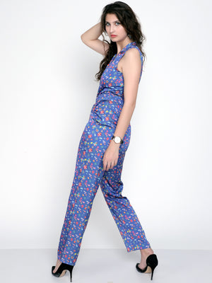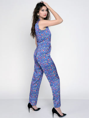Aeval Blue Floral Print Sleeveless Jumpsuit