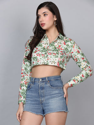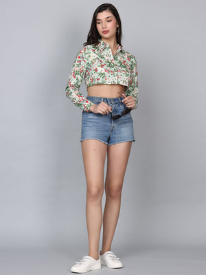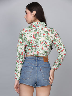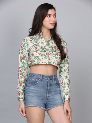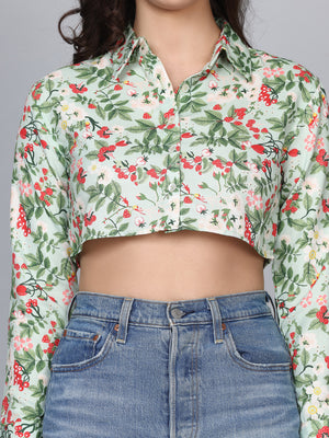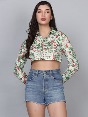 Chic crop shirt simple yet elegant with beautiful fabric button details is definitely a must have for this season. Alexis green flower print is a statement-making shirt style crop top is perfect for your day out. Pair it with your favorite trouser, short or skirt for any occasion or casual wear.