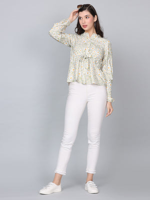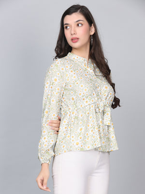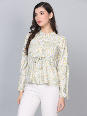 Amelia Green Floral Print Gather Top is your perfect match for all of your special meetings or day to day office visits. Pair this floral print crop top with your favorite trouser, short or skirts for any occasion to make style statement.