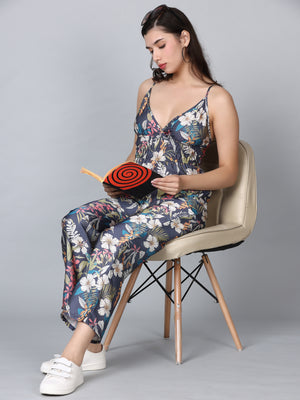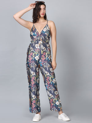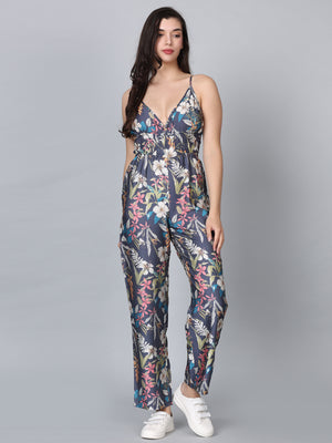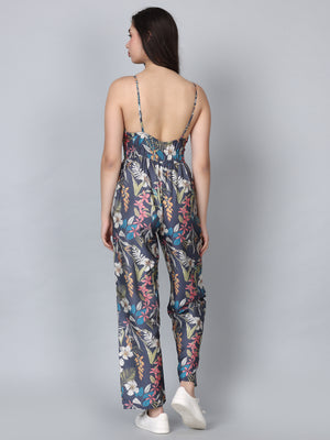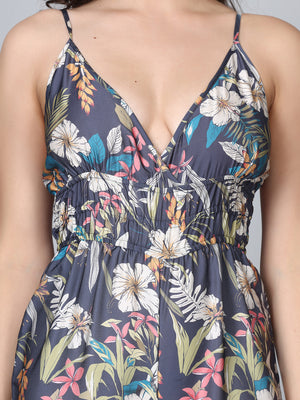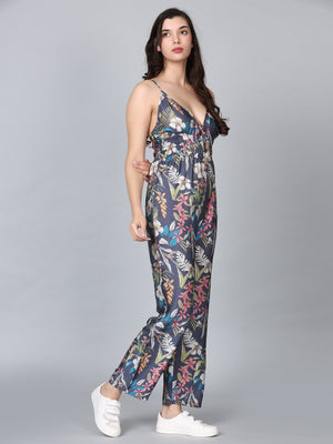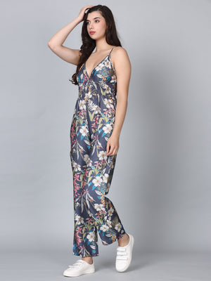 Asteria Grey Tropical Print Strappy Jumpsuit