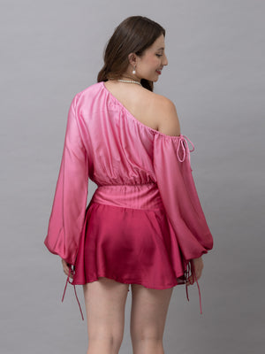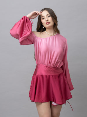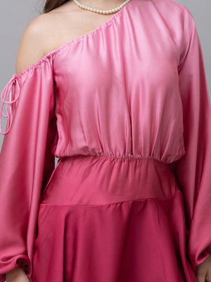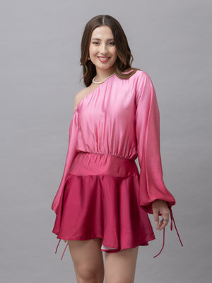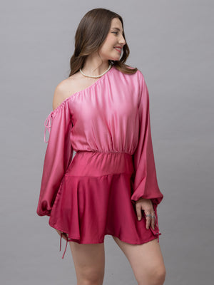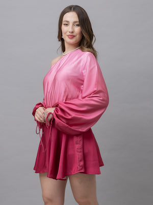 Belle Pink Ombre One Shoulder Mini Dress