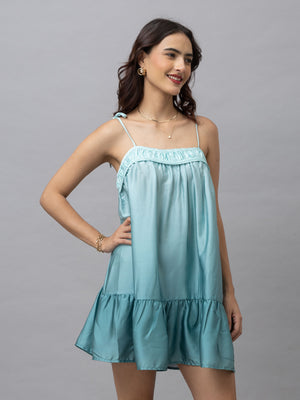 Buffy Sea Green Ombre Print Mini Dress