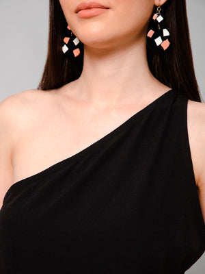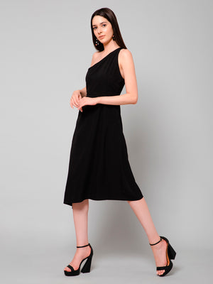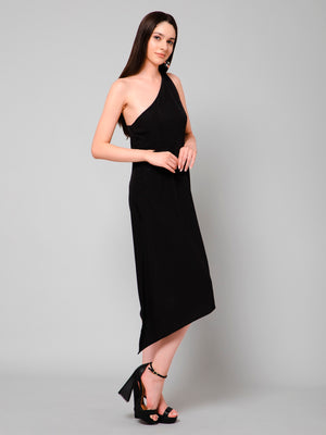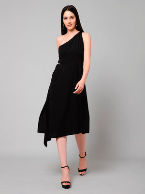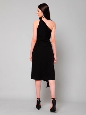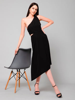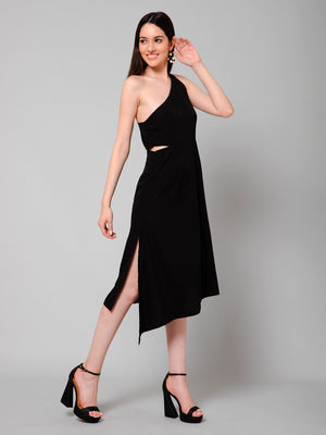 Cocktail Black One Shoulder Cut-out Midi Dress