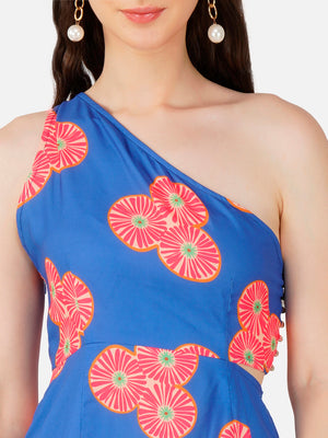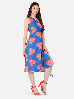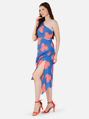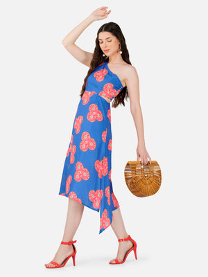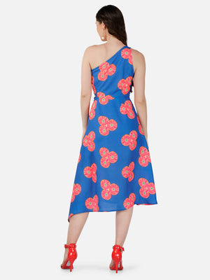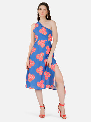 Cocktail Blue One Shoulder Cut-Out Midi Dress
