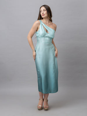 Ella Green Ombre One Shoulder Midi Dress