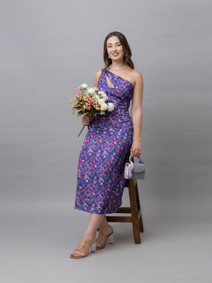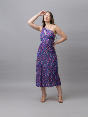 Ella one-shoulder midi dress is a vibrant and stylish piece that combines bold colors and a flattering silhouette. The stylized neckline accentuates the bust and adds a feminine touch. This dress is a stylish and versatile piece that can be worn for various occasions, from casual outings to semi-formal and party events.