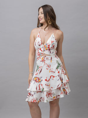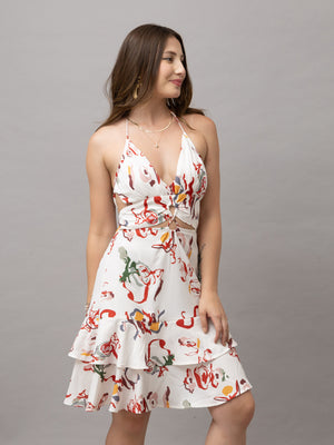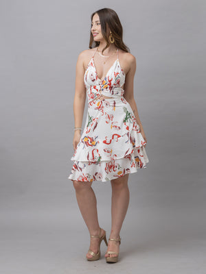 Embrace the charm of the season with this delightful white flared mini dress. Designed to bring a touch of elegance and cheer to your wardrobe, Evelyn midi dress is perfect for various occasions. Pair with sandals for a relaxed look or strappy heels for a formal occasion.