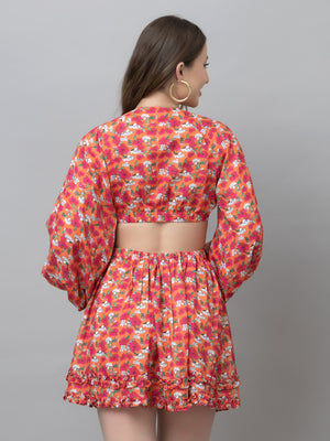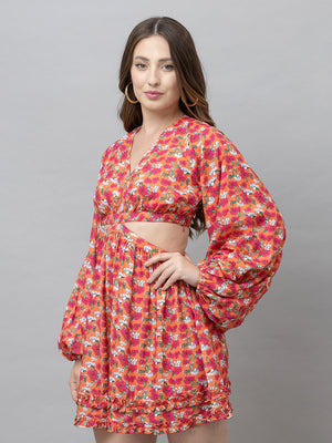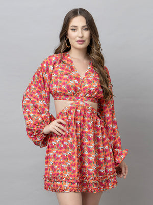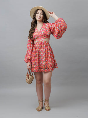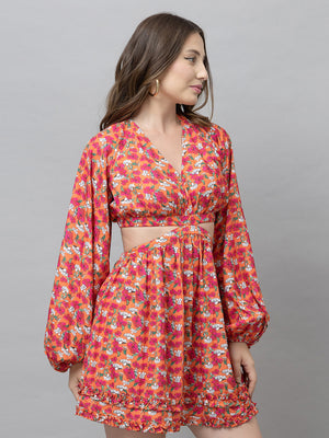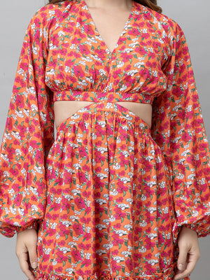 Flora Orange Floral Flare Dress
