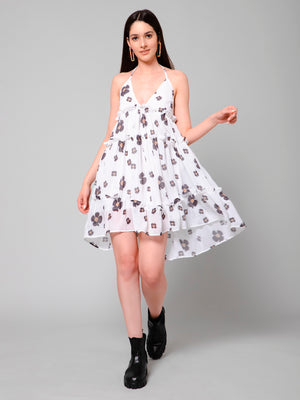 Gaia White Floral Print Strap Shoulder Mini Dress