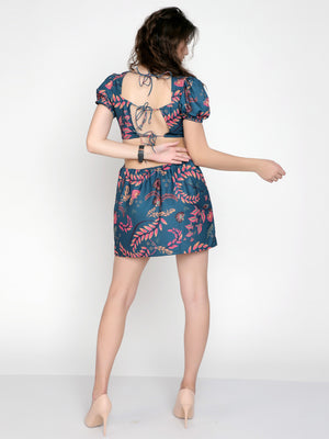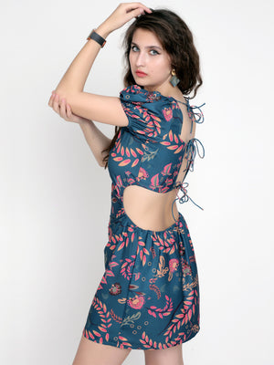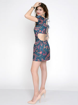 Juria Blue Tropical Print Back Tie-up Mini Dress