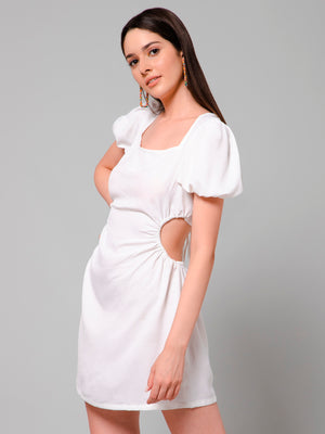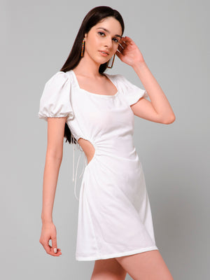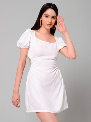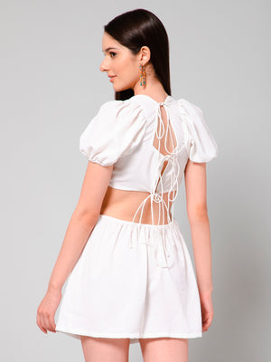 Juria mini dress has beautiful puff sleeves and cutout string tie up back detail, This look is very feminine and effortlessly elegant for a beautiful day and night both with elastic detail at the back with fitted bodice and A line dress.