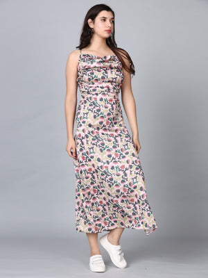 Kara Coral Floral Print Cowl Neck Satin Slip Dress