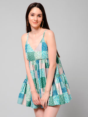 Turn heads at YOU on your next party with our stunning Boho Patch printed short dress with nice panel and gather details on the skirt part is an amazing Fomo dress for this season. Luna Multicolor Patch Print Bohemian Short Dress With Strap Shoulder And Gathering Detail Under The Bust-Line.