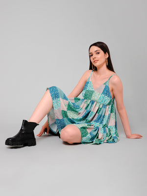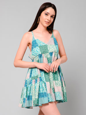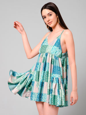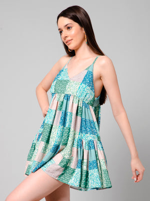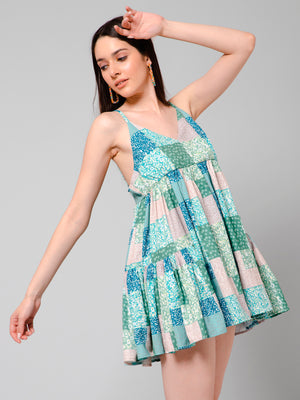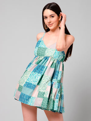 Luna Multicolor Patch Print Bohemian Short Dress
