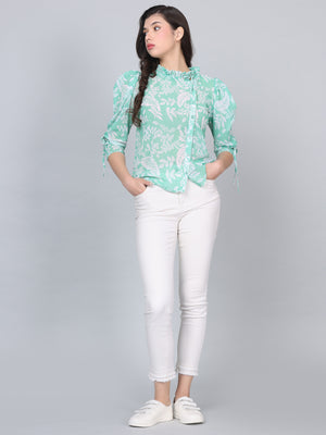 Lyra Green Floral Print Top is your perfect match for all of your special meetings or day to day office visits. Pair this floral print top with your favorite trouser, short or skirts for any occasion to make style statement.