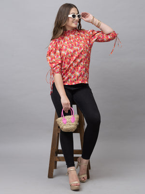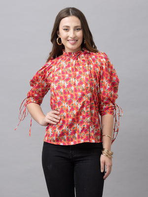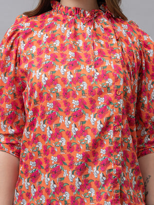 Lyra Orange Floral Print Top is your perfect match for all of your special meetings or day to day office visits. Pair this Orange Floral print top with your favorite trouser, short or skirts for any occasion to make style statement.