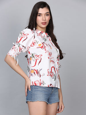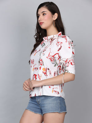 Lyra White Abstract Print Top is your perfect match for all of your special meetings or day to day office visits. Pair this abstract print top with your favorite trouser, short or skirts for any occasion to make style statement.