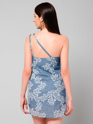 Lysa Blue Ditsy Print One Shoulder Short Dress