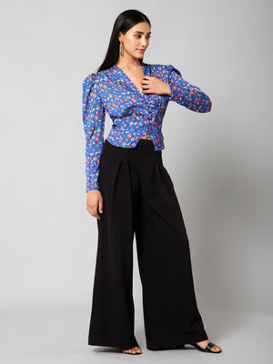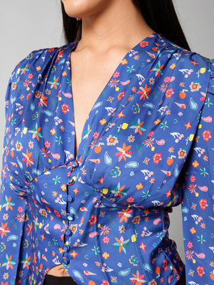 Make your style statement with Camilla midnight blue floral print princess line corset top. Pair it with your favorite trouser, short or skirts for any occasion.