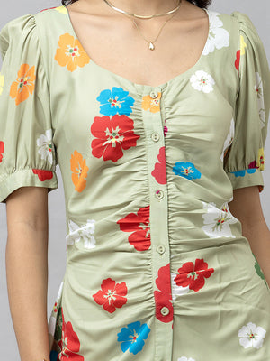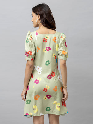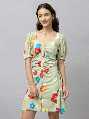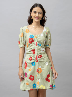 Pomona mini dress exudes elegance and charm with its stylish design and vibrant color. It boasts a trendy and stylish finish that enhances its sophisticated appeal. The dress features a stylish full button down with gathered details at the waist, and the short sleeves add to its comfortable fit. Pair it with statement earrings and your favourite shoes as this outfit is both stylish and versatile for all your special occasions.