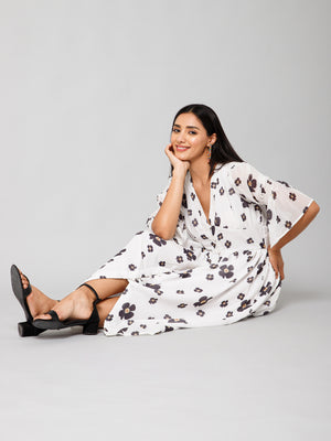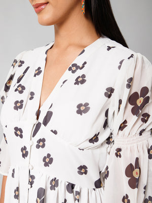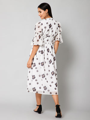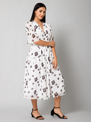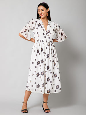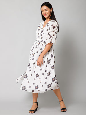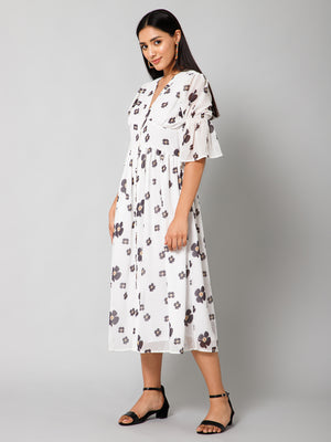 Classic Day to night dress with beautiful waist yoke detail which is making it an elegant fit with front button closure along with fit to flayer short sleeves and gathered on it is the best option for this season.