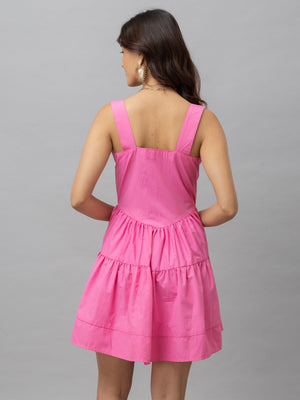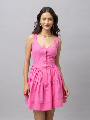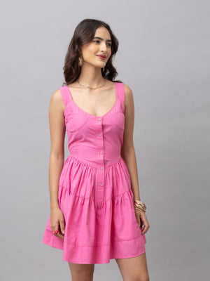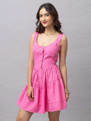 Scarlett pink mini dress is a vibrant and stylish piece that combines solid pink color and a flattering silhouette. The stylized neckline accentuates the bust and adds a feminine touch. This dress is a stylish and versatile piece that can be worn for various occasions, from casual outings to semi-formal and party events.