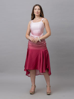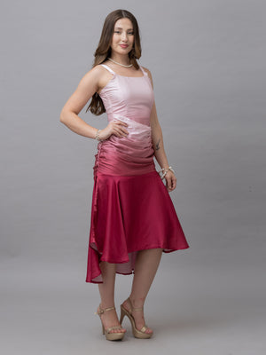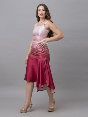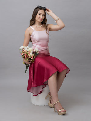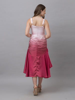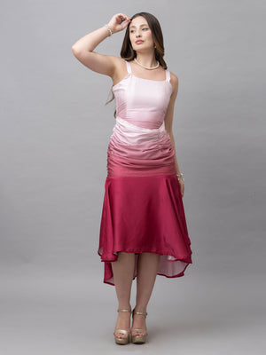 Victoria pink ombre print gather midi dress exudes elegance and charm with its stylish design and soft hues. It boasts a trendy and stylish finish that enhances its sophisticated appeal. The dress features a stylish neck with gathered details at the waist, and the short sleeves add to its comfortable fit. Pair it with statement earrings and your favourite shoes as this outfit is both stylish and versatile for all your special occasions.