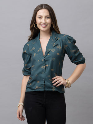 Zaray Green Abstract Print Top is your perfect match for all of your special meetings or day to day office visits. Pair this Green Abstract print top with your favorite trouser, short or skirts for any occasion to make style statement.