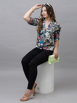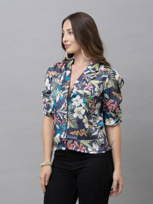 Zaray is an eye-catching grey tropical floral print top is a perfect addition to any fashion-forward wardrobe. The vibrant, multi-colored floral print creates a stunning visual impact, making it an ideal choice for those who love to make a statement with their style.
