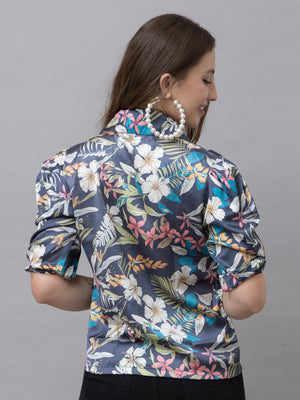 While the floral print and vibrant colors make this top an excellent choice for spring and summer wardrobes, it can also be layered under cardigans or jackets for winter seasons. The rich grey color with multi print allows for year-round wear when styled appropriately. This floral top is not just a simple top; it's a mood-lifting piece that brings a touch of nature's beauty to your everyday style. Whether you're heading to a casual brunch or a semi-formal event, this top will ensure you look effortlessly chic and ready for any occasion.