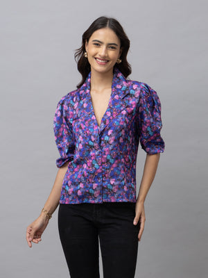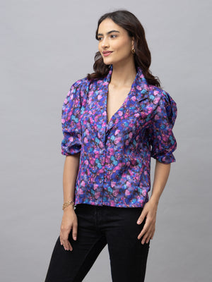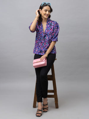Zaray Purple Floral Print Top is your perfect match for all of your special meetings or day to day office visits. Pair this Purple Floral print top with your favorite trouser, short or skirts for any occasion to make style statement.