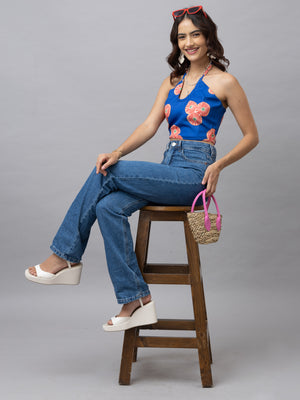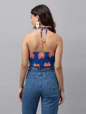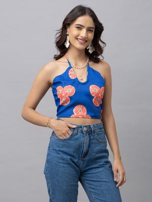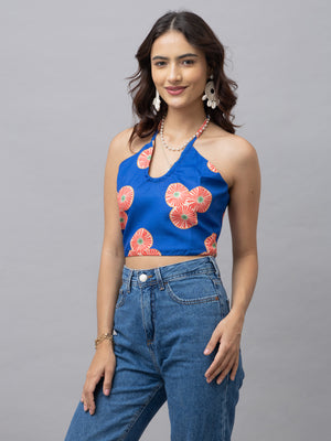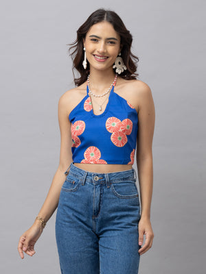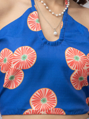Zoe Blue Fruit Print Crop Top is your perfect match for all of your special meetings or day to day office visits. Pair this Blue Fruit print top with your favorite trouser, short or skirts for any occasion to make style statement.